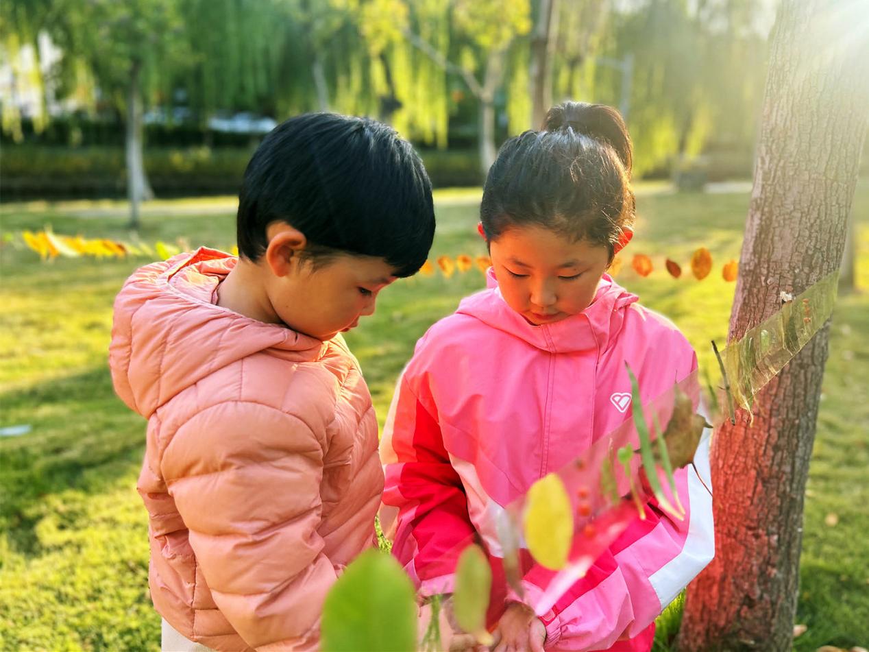 活動(dòng)中,藝北社區(qū)、巨龍社區(qū)聯(lián)合轄區(qū)幼兒園,帶領(lǐng)孩子們走進(jìn)蒼梧綠園,感受季節(jié)變化。孩子們手持小筐,仔細(xì)尋找季節(jié)變換的蹤跡——金黃的銀杏葉、火紅的楓葉以及形態(tài)各異的落葉都成了他們眼中的“寶貝”。在社工的引導(dǎo)下,孩子們認(rèn)真觀察葉片的形狀、脈絡(luò)與色彩,感受大自然的神奇魅力。