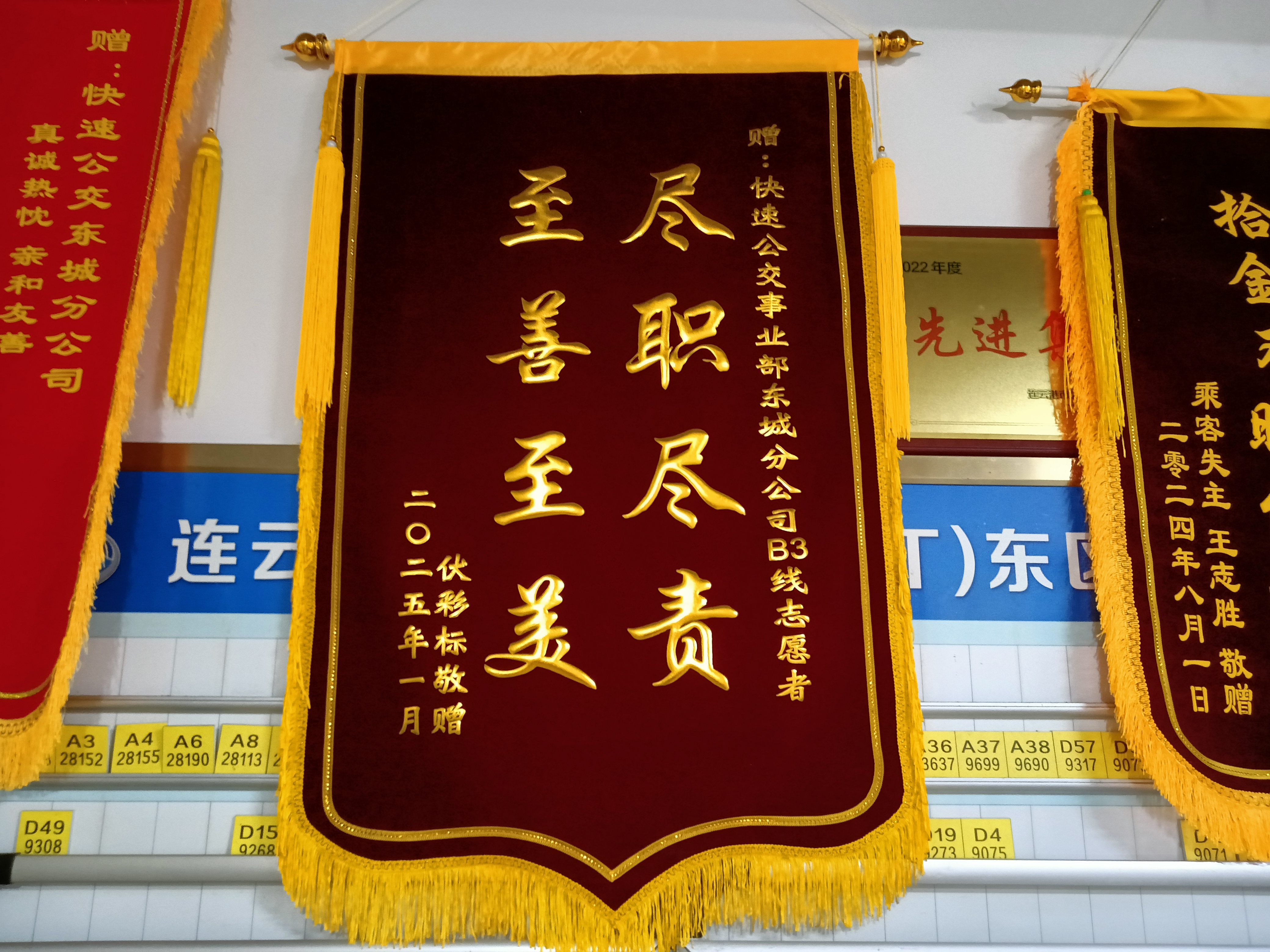 為了表達感謝,掌阿姨特意讓上大學放假回來的孫女定制了印有“盡職盡責 至善至美”的錦旗,表達對志愿者們辛勤付出的肯定。下一步,B3敬老文明線將繼續(xù)為乘客提供更加周到、細致的服務(wù),努力做好公交志愿服務(wù),深化公交社會形象,彰顯公交的責任與擔當。
