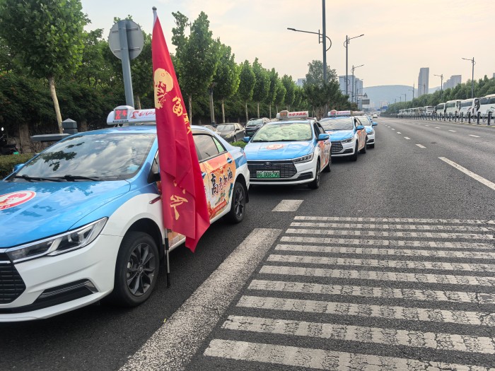 清晨7時(shí)許,新海高級(jí)中學(xué)北門附近已是一片熱鬧景象?!芭c雷鋒車同行·雷鋒的士”車隊(duì)的志愿者們?cè)缫训诌_(dá),他們的愛(ài)心送考出租車整齊排列,宛如一道亮麗的風(fēng)景線。車身上,“高考加油、愛(ài)心送考”的標(biāo)識(shí)格外醒目。