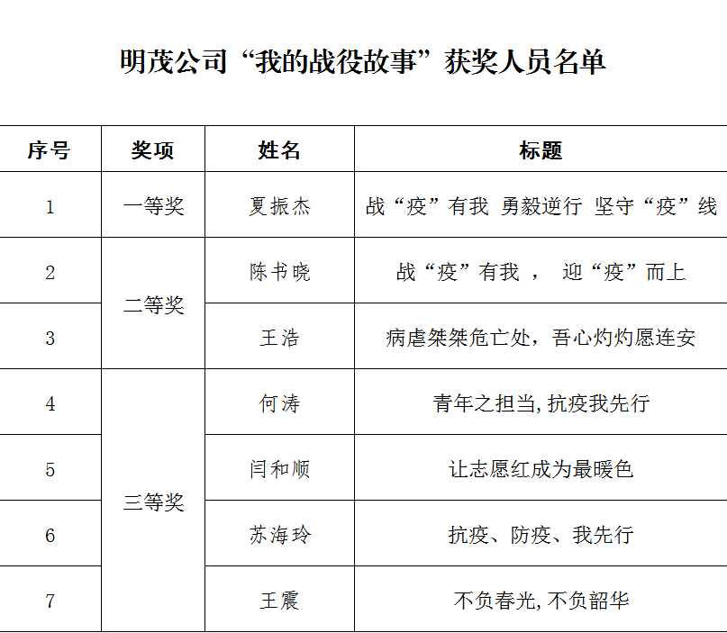 此次活動得到了公司員工們的積極響應(yīng)和支持,共收到征文30余篇,并在公司公眾號刊登評選。征文活動截止后,本著公平、公正的原則,公司邀請了相關(guān)領(lǐng)域的專家對全部有效應(yīng)征稿件進(jìn)行了認(rèn)真細(xì)致的評審工作,經(jīng)過網(wǎng)絡(luò)和評委的雙重投票最終評選出7部獲獎作品。其中夏振杰《戰(zhàn)“疫”有我 勇毅逆行 堅守“疫”線》獲一等獎、陳書曉《戰(zhàn)“疫”有我 迎“疫”而上》、王浩《病虐桀桀危亡處,吾心灼灼愿連安》獲二等獎、何濤、閆和順、蘇海玲、王震獲三等獎。